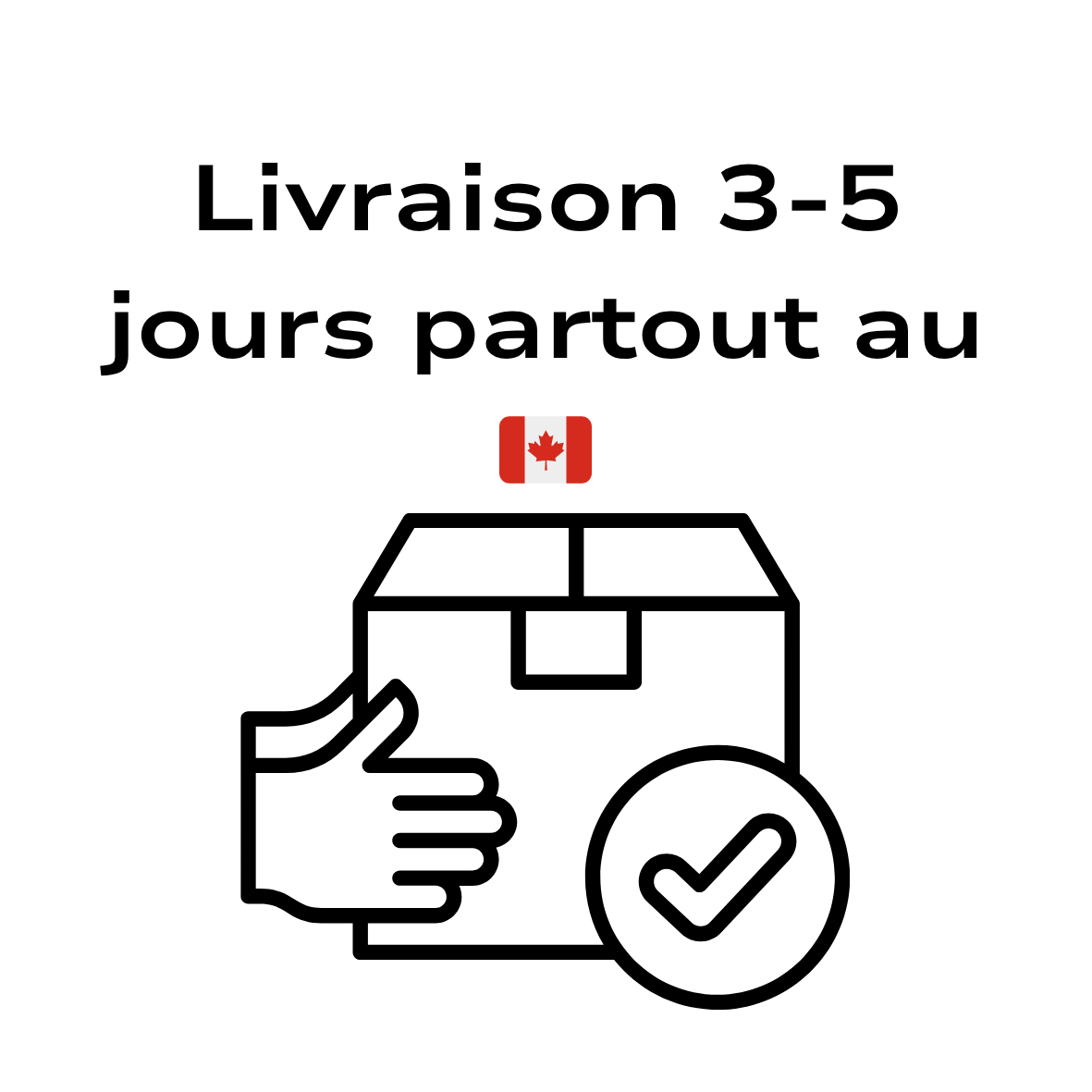 La livraison prend généralement 3 à 5 jours ouvrables partout au Canada. Une fois votre commande expédiée, vous recevrez un numéro de suivi pour savoir exactement où se trouve votre colis.